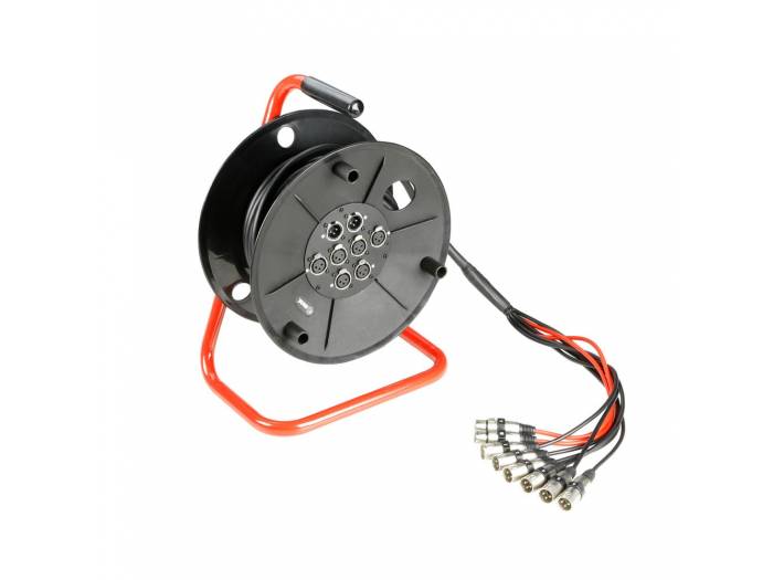 - Enrollador de cables con cajetín de escenario integrado con 6 entradas de XLR y 2 salidas de XLR