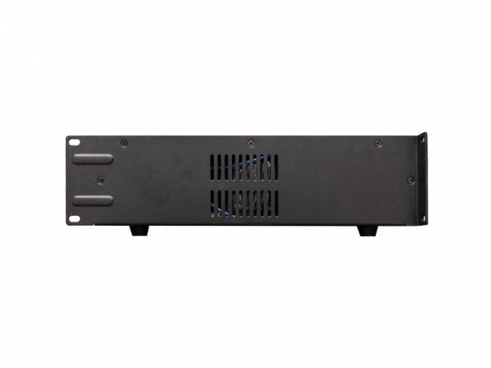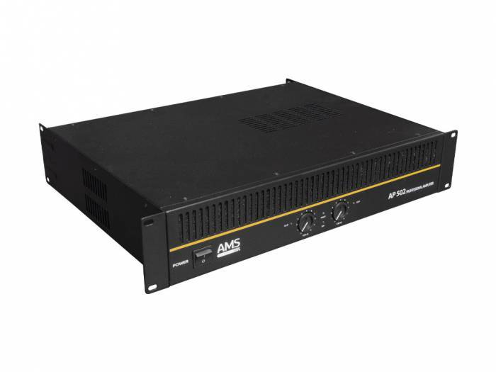 AP 502 es un amplificador profesional para instalaciones de baja impedancia. De esta forma, permite funcionar con sistemas de altavoces de 4 y 8 ohmios, así como en modo Bridge. Cuenta con selector de modo stereo/bridge y conmutador de masa flotante para prevenir ruidos ocasionados por el conexionado a masa de otros dispositivos. Cada canal cuenta con entradas balanceadas/desbalanceadas mediante conector XLR3 y RCA. Para la salida también dispone de doble conexionado, Speakon y Binding Post en este caso. Disponen de sistemas de protección ante cortocircuito y DC en la salida, sobretemperatura o limitador, así como función soft start. Su tamaño en 2 HU 19", permite la colocación de varias unidades en un rack de transporte.