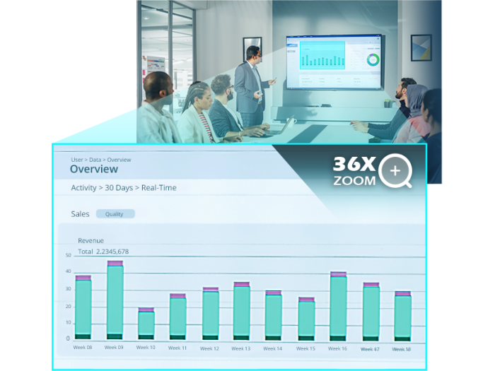 Por último, el ángulo de visión de 84,5°, combinado con la tecnología SmartFrame, permite encuadrar de forma inteligente a los participantes (hasta 7 m de distancia) ajustando automáticamente el campo de visión para que siempre queden incluidos en el encuadre, independientemente de dónde se encuentren en la sala. Sin necesidad de mando a distancia.