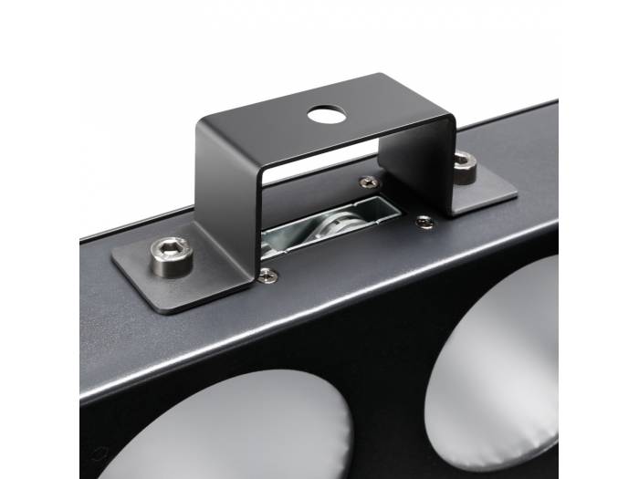 El panel de matriz cuenta con 4 modos DMX, control por sonido y 4 curvas de atenuación ajustables. Se puede utilizar en los modos maestro, esclavo y autónomo y funciona de manera muy silenciosa gracias a un sistema de refrigeración por convección muy eficaz. La carcasa metálica ultraplana está provista de conectores de entrada y salida de 3 pines para la señal DMX, un conector eléctrico azul de entrada, un conector eléctrico blanco de salida, una pantalla con 4 botones y una argolla de seguridad. El panel de matriz se suministra con un soporte de montaje y puede funcionar con una tensión de 100 a 240 voltios.