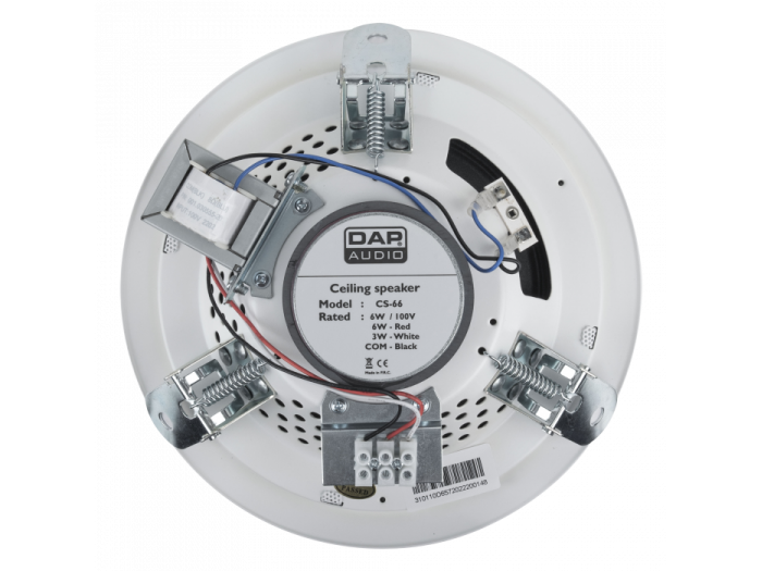 El DAP CS-66 es un altavoz de techo pasivo de 6 pulgadas adecuado para instalaciones de 100 V. Este altavoz encastrable blanco de 6 vatios tiene una rejilla de metal discreta El volumen se puede adaptar para que coincida con el de otros componentes del sistema mediante las distintas tomas de potencia del transformador.