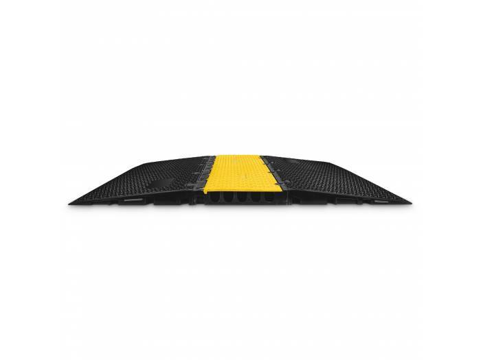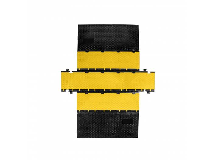 El sistema se puede ampliar cuanto se desee a lo largo y ancho, lo cual garantiza la facilidad de paso y la seguridad incluso en las zonas donde no basta con cinco canales, como por ejemplo cerca de generadores eléctricos o del control de FOH. En estos casos se pueden tender cables de sonido, luz y electricidad de forma individual y sencilla. La estructura completamente simétrica de las piezas intermedias facilita el montaje y nunca más tendrá que estar buscando la pieza correspondiente. Además, tampoco hacen falta planos de montaje exactos. Gracias a esta simetría, al colocar las piezas intermedias y las rampas a matajunta se logra una estabilidad óptima tanto en sentido longitudinal como transversal, sin tener usar piezas que se puedan perder, como adaptadores o conectores. Las uniones están pensadas de forma que tengan suficiente juego para un montaje sencillo sin por ello perder estabilidad. En caso de tener que instalar los pasacables sin rampas, hay adaptadores disponibles para unir las piezas intermedias en sentido longitudinal.
