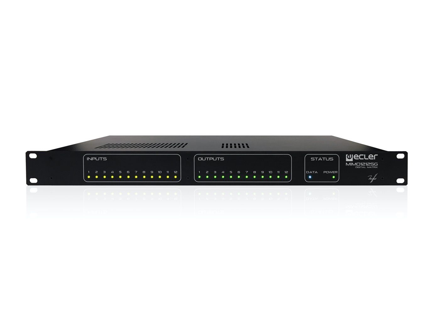 MIMO1212SG (MIMO12 SINGLE) es una matriz de audio digital compatible con EclerNet. Mantiene toda la esencia del MIMO88 estándar, sus principales características y su calidad de audio, convirtiéndola en una versión competitiva de la aclamada matriz digital MIMO 88.