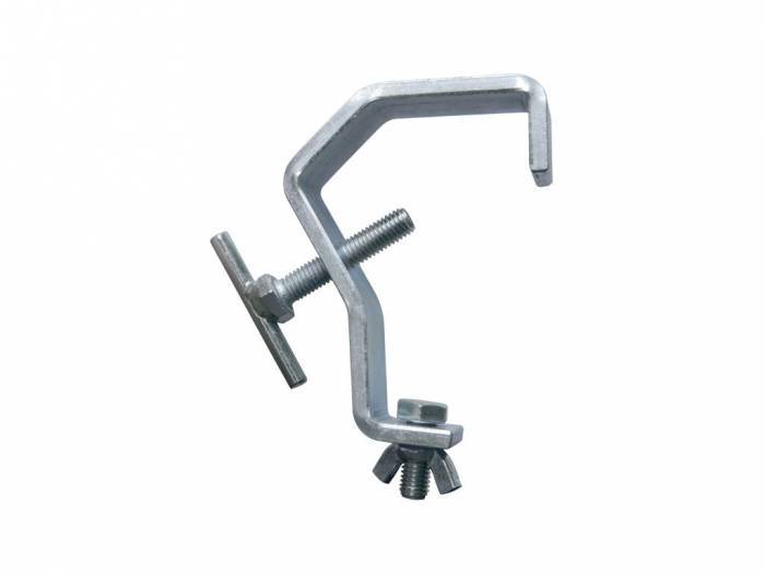 FG 02 es una garra para proyector de iluminación que permite una carga máxima de 15 Kg. Está fabricada en acero y diseñada para ser instalada en tubos de 50 mm. Dispone de un tornillo de métrica 10 con tuerca mariposa para la conexión del proyector.
