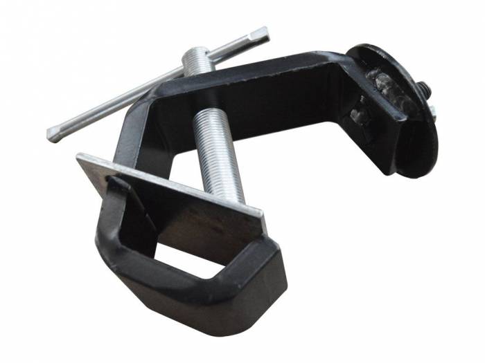 Garra para proyector de iluminación fabricada en acero, para tubo de 50 mm con pletina de protección. Carga máxima: 150 kg. Disponible en color negro.
