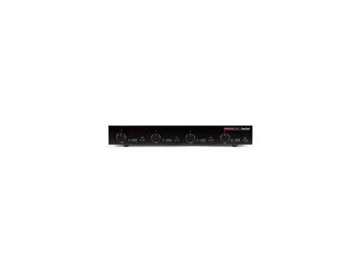 Selector de altavoces estéreo de 4 líneas de 8 ? con control independiente de volumen y selección de entrada A o B. Atenuación con autotransformador. Cada salida se puede activar/desactivar individualmente.