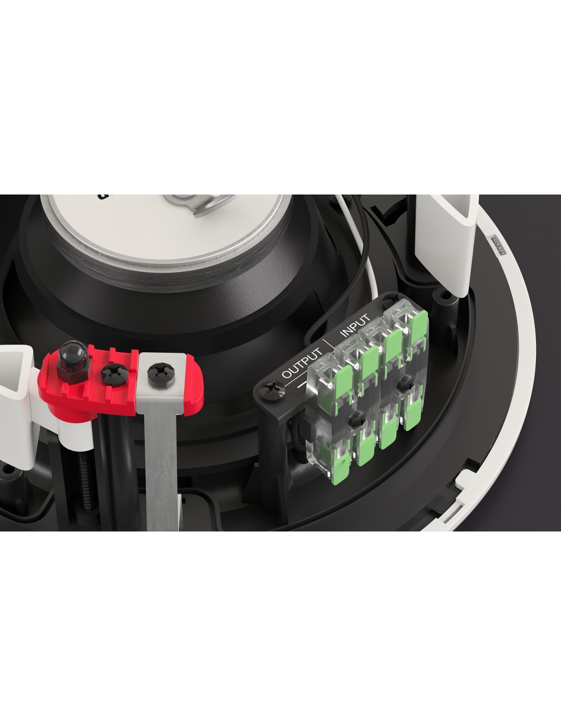 - CARACTERÍSTICAS: Altavoz de techo de baja impedancia. Rejilla sin marco y perfil bajo, construida en aluminio resistente a la oxidación. Desmontable, bloqueable mediante giro. Se puede quitar el logo y pintar. Terminales de conexión rápida y gran conductividad. Sistema anticaída para ayuda en la instalación. Gancho para cable de seguridad. Soportes de sujeción al techo estables, mediante tornillo sin fin. Protección contra el polvo y el agua.