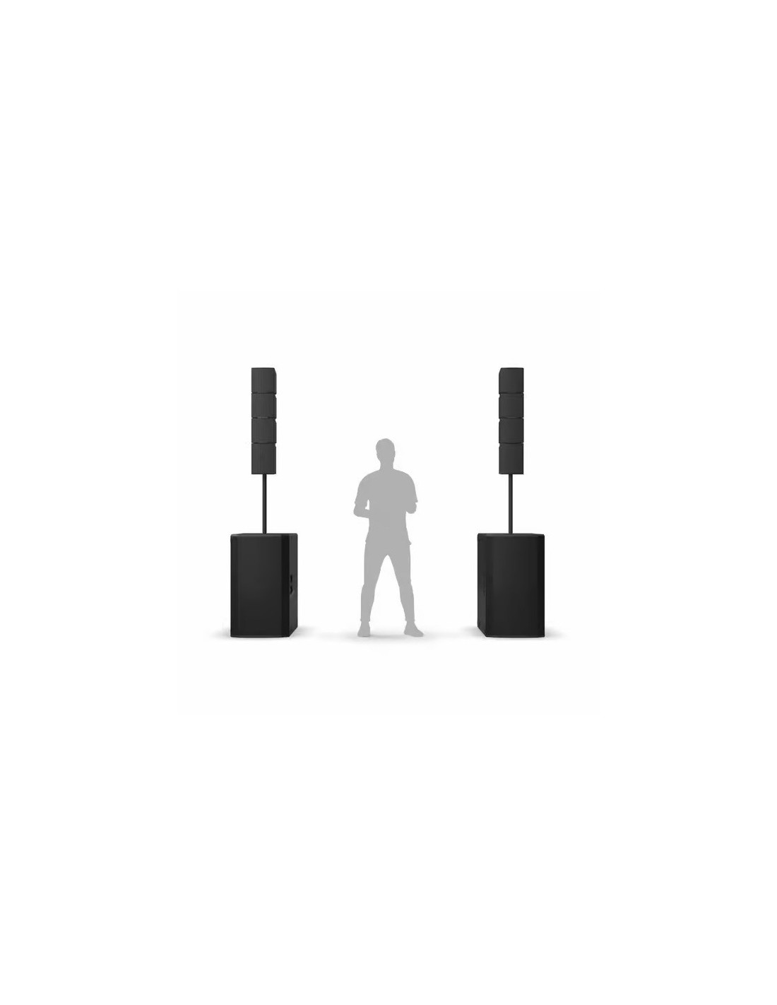 Incluso en la configuración SMALL, el sistema MAILA más pequeño es un sistema estéreo activo de rango completo extremadamente potente. El sistema ground stack consta de un subwoofer de alto rendimiento MAILA SUB 2x15''con función cardioide, tres satélites MAILA SAT por lado estéreo y un módulo amplificador MAILA SPA, que acciona los satélites, por lado estéreo.