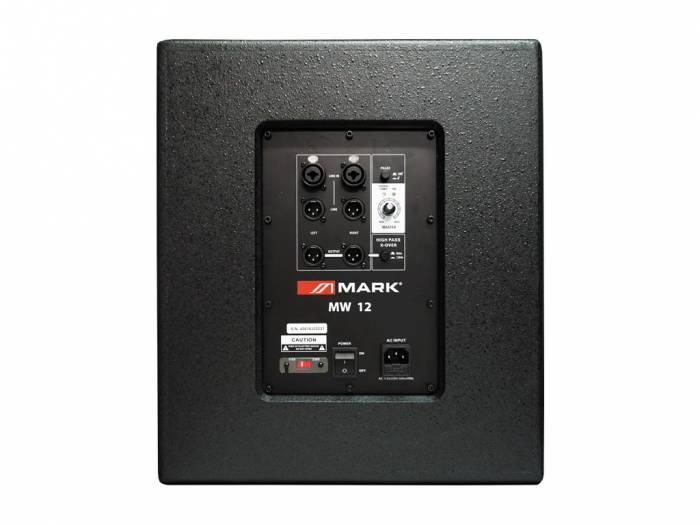 MW 12 AM con woofer de 12" incorpora 2 entradas LINE, 2 salidas LINK y conexionado para altavoces activos de 2 vías. Incluye pulsador de inversión de fase y filtro paso alto con dos frecuencias de corte diferentes (80 Hz / 125 Hz). La potencia de salida puede controlarse mediante un potenciómetro master con LED limitador de señal. Su diseño robusto, elegante acabado (fabricado en madera de alta densidad) y su forma son muy adecuados en aplicaciones de refuerzo de graves, como salas de conferencias, escuelas o instalaciones de cine en casa. MW 12 incorporan una inserción de 35 mm en la parte superior.