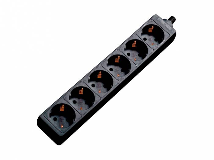 6 conectores CEE7 Tipo F hembra.Cable 3 metros con conector CEE7 tipo F macho.Carcasa de plástico de color negro.Color negro.| Tipo | Base conexión eléctrica |