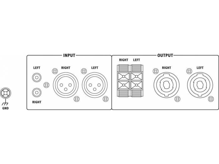 - Tomas RCA y tomas XLR como entradas estéreo, terminales SPEAKER y terminales de altavoz con resorte como salidas estéreo