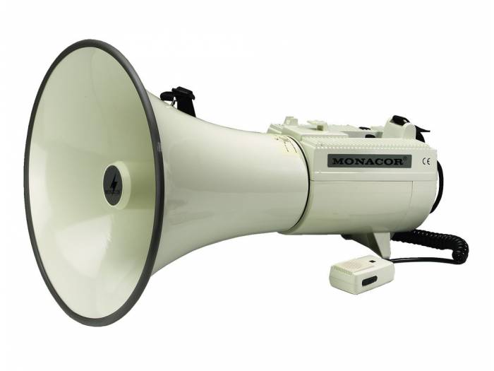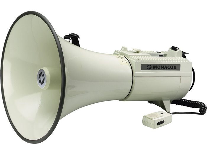 Si el modelo TM-35 se te queda corto, el Monacor TM-45 juega en otra liga. Con una potencia máxima de 45W y una presión sonora ensordecedora de 124 dB, este equipo está diseñado para cubrir grandes áreas abiertas donde el mensaje no puede perderse.