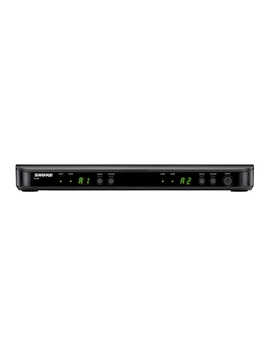 BLX188/MX53 Sistema inalámbrico dual para presentador, con dos micrófonos earset MX153, el Microflex MX153 de Shure es un micrófono earset subminiatura profesional y discreto, ideal para la voz hablada y en situaciones en las que un micrófono lavalier no proporciona la suficiente ganancia antes de la realimentación. Con transmisión inalámbrica analógica dual.