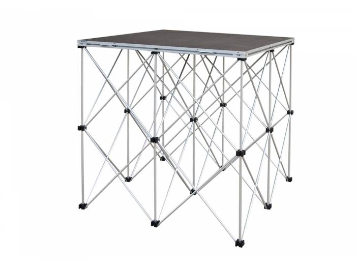 1000 x 1000 x 1000 mm.Patas plegables.Estructura de aluminio y plataforma de contrachapado.Antideslizante.| Material | Estructura: aluminio; Plataforma: Madera multicapa de 35 mm |